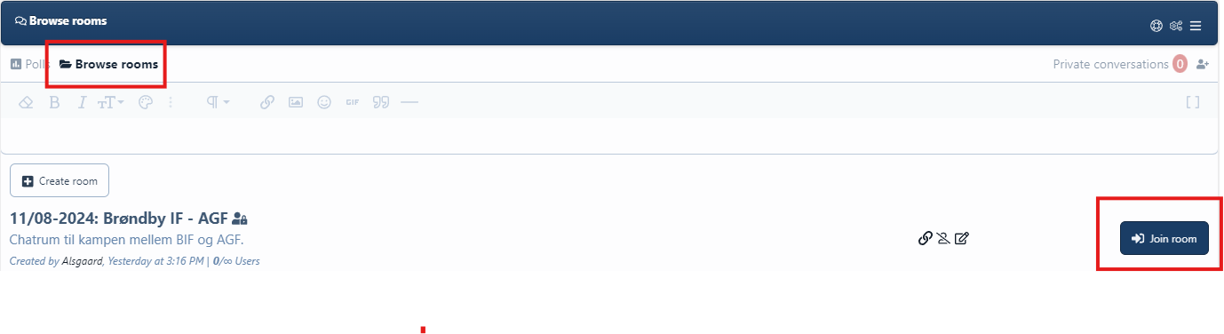Vi har tilføjet et chatrum til sitet. Det er kun åbent på kampdage og primært under kampen, hvor det lige kan være nemmere (og bedre) at chatte med medfans, i stedet for at skulle skrive indlæg i en debattråd.